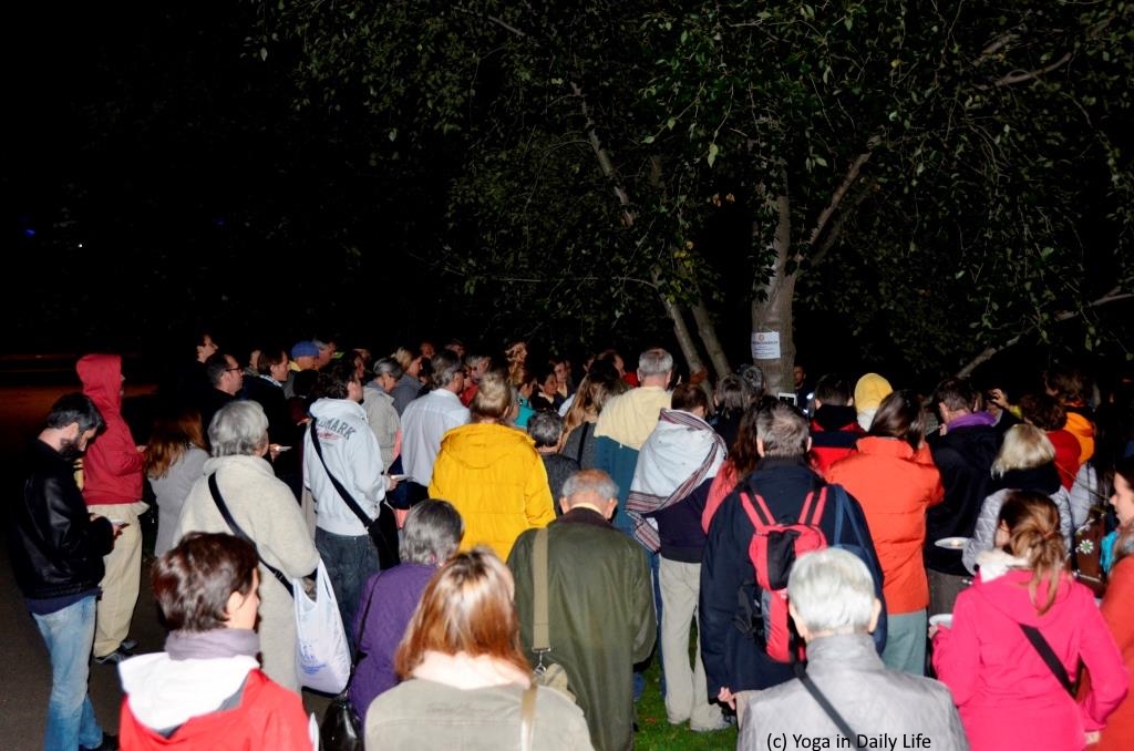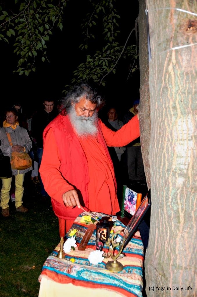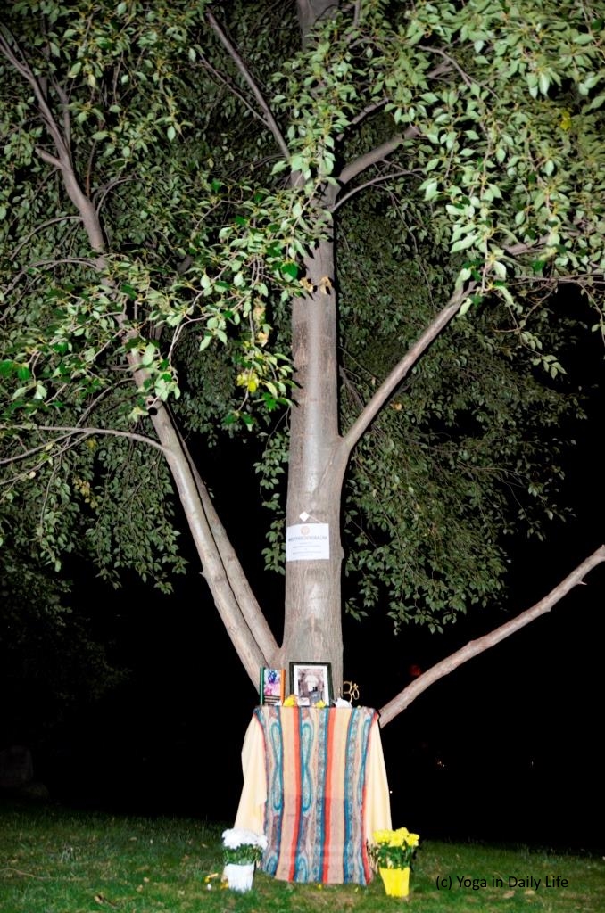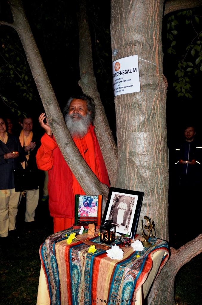 Dieser sehr mächtige Baum war der 1. Weltfriedensbaum in Österreich und wurde im Jahr 2005 von Vishwaguruji mit dem Bezirksvorsteher des 3. Bezirks gepflanzt - steht also seit 12 Jahren an seinem Platz. Am Fuße des Baums war ein kleiner blumengeschmückter Altar aufgebaut, auf dem das Friedenslicht leuchtete.