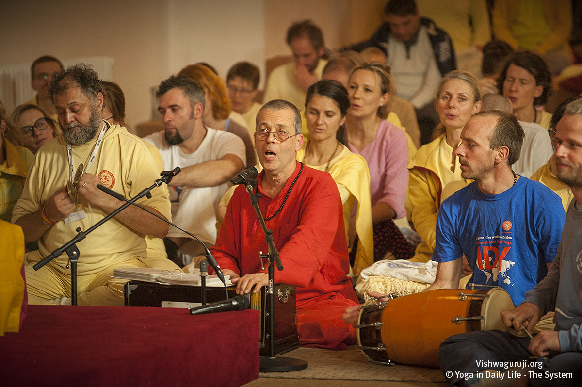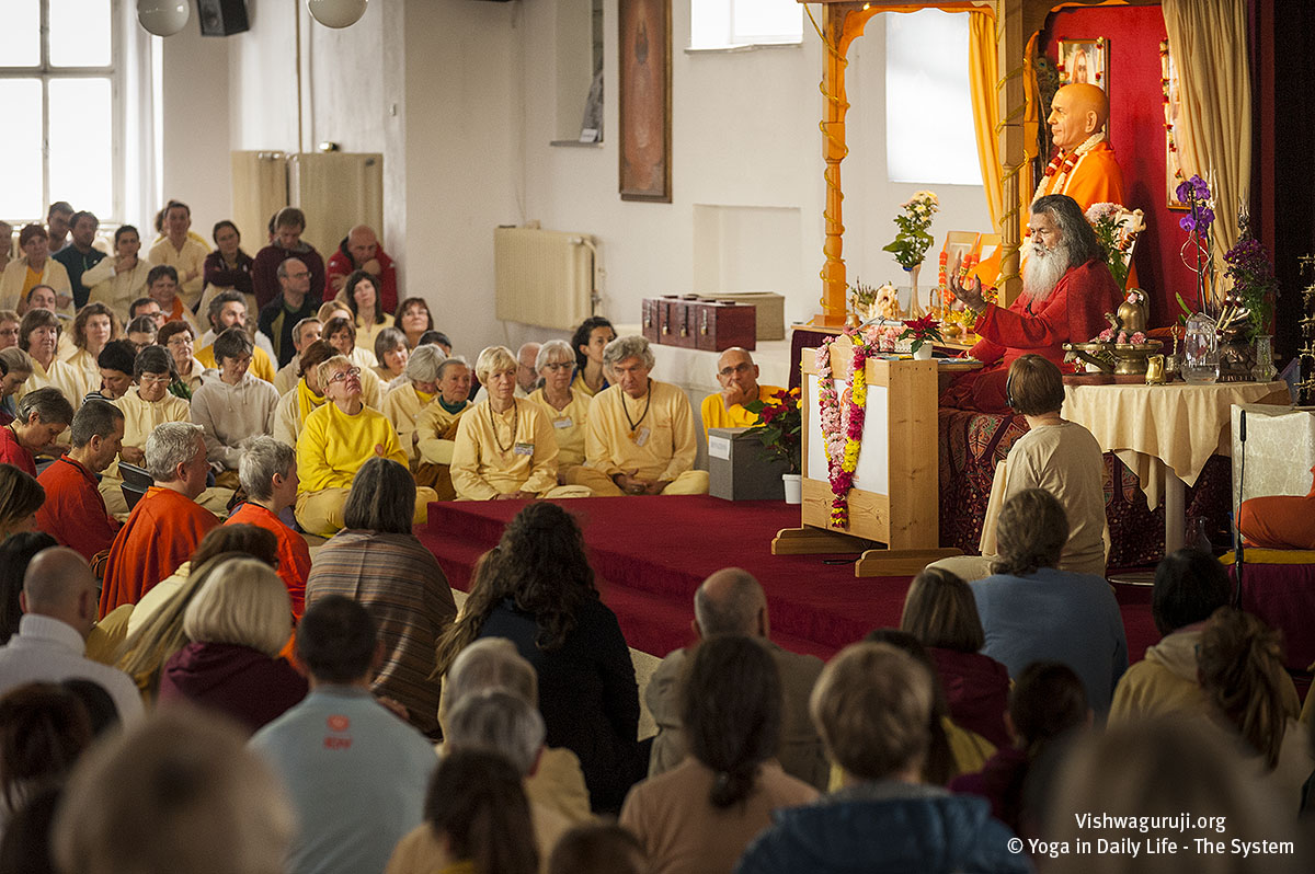 Vishwaguruji fügte hinzu: Eine der besten Techniken, um Gefühle von Angst, Wut und Stress zu beruhigen, ist das Wiederholen eines Mantras. Wer ein Guru-Mantra hat, soll dieses wiederholen; für diejenigen, die kein persönliches Mantra haben, ist auch eine sehr einfache kontinuierliche Wiederholung von 5 Ziffern oder 5 Buchstaben des Alphabets wirksam.