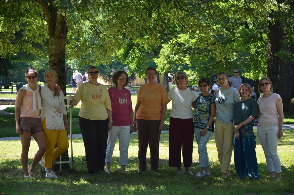 Mit sehr viel Freude und bei strahlendem Wetter feierten wir den 11. Internationalen Yogatag auf der Wiese im Schweizer Garten, in der Nähe unseres "Yoga im täglichen Leben"-Zentrums.